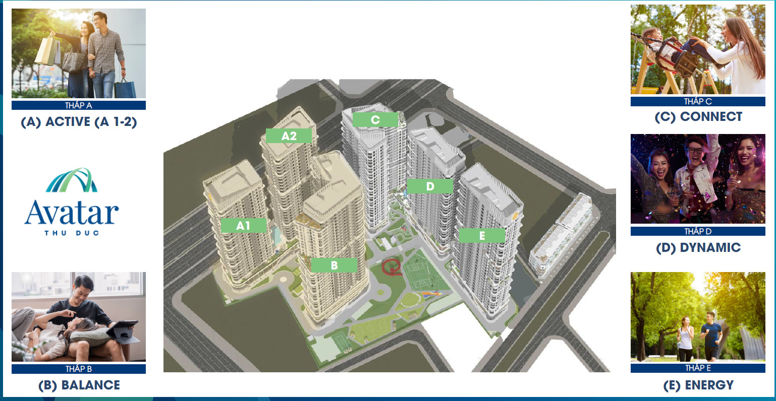Dự án Avatar Thủ Đức bao gồm 6 tháp được đặt tên theo thứ tự lần lượt là: