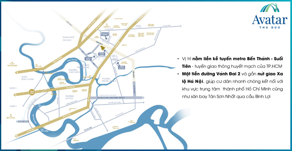 Dự án Avatar Thủ Đức tọa lạc tại đường Vành Đai 2, phường Trường Thọ, TP. Thủ Đức, TP HCM. Dự án sở hữu vị trí đắc địa, xung quanh là đường chính dẫn đến các quận, huyện, khu đô thị tiến bộ phát triển. Nằm gần nhiều tuyến đường huyết mạch kết nối liên vùng bao quanh như Đại lộ Phạm Văn Đồng, Quốc Lộ 1A, Quốc Lộ 1K, Quốc Lộ 13, Xa lộ Hà Nội, Tuyến cao tốc TP HCM – Long Thành – Dầu Giây,…