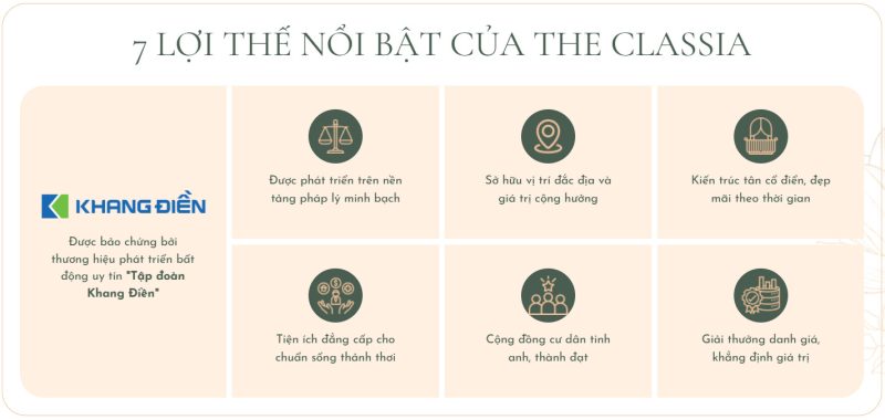 ‘Được kiến tạo từ những giá trị hoàn mỹ nhất về vị trí, kiến trúc, không gian sống, pháp lý, The Classia là một tinh hoa bất động sản tiếp nối các giá trị khác biệt mà thương hiệu Khang Điền đã xây dựng qua hơn 20 năm hình thành và phát triển.